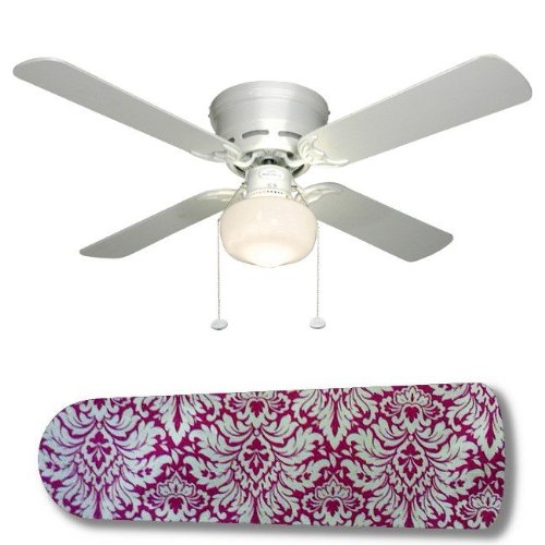 4 Blade ceiling fan with a schoolhouse light kit and custom design blades and will be shipped in original box. It is white with a flushmount design and is adjustable for downrods if needed. This fan features a 3-speed reversible airflow for energy efficiency all year long. Comes with Light kit and cNew Image Concepts 3010 42 in. Ceiling Fan with Lamp - Pink and White Damask Do not Miss!! 4 Blade ceiling fan with a schoolhouse light kit and custom design blades and will be shipped in original box. It is white with a flushmount design and is adjustable for downrods if needed. This fan features a 3-speed reversible airflow for energy efficiency all year long. Comes with Light kit and c... New Image Concepts 3010 42 in. Ceiling Fan with Lamp - Pink and White Damask